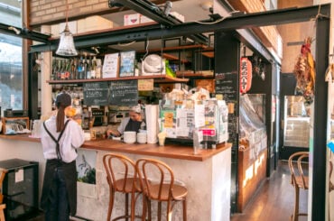 小竹向原駅を出て4〜5分、住宅街の中にある「まちのパーラー」。外からは店内が見えても、入り口はどこ? となりそうなこの店ですが、保育園のお迎えついでに親子で食事をしたり、パンを買っていく人も多い人気店です。