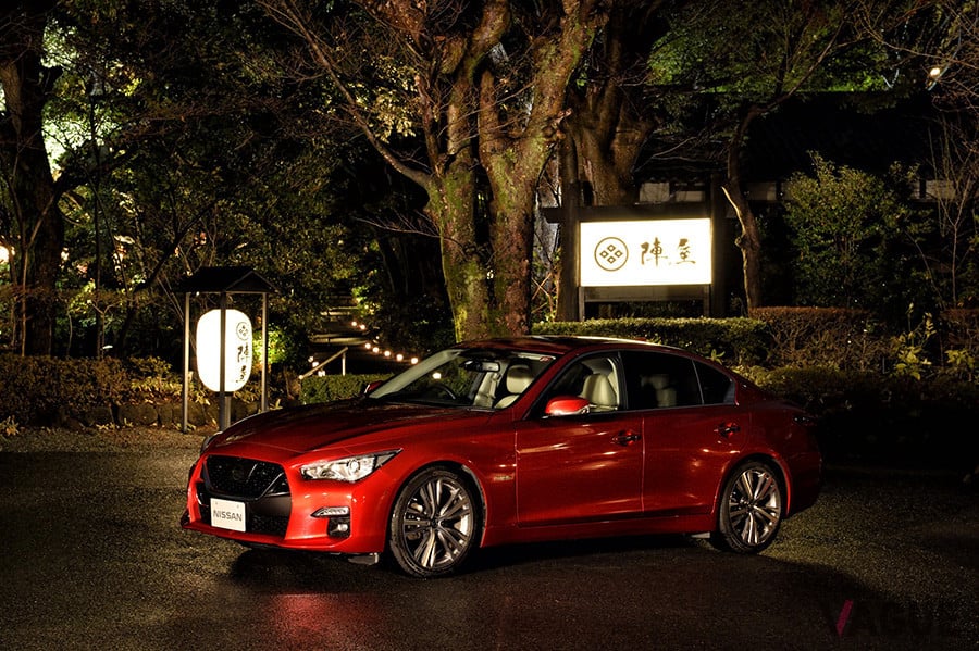10年足らずで、経営がV字回復した陣屋は、マスコミなどでも注目の旅館だ。その秘訣を知るために、実際に宿泊してみることに。旅のお供は最新の日産スカイラインである。