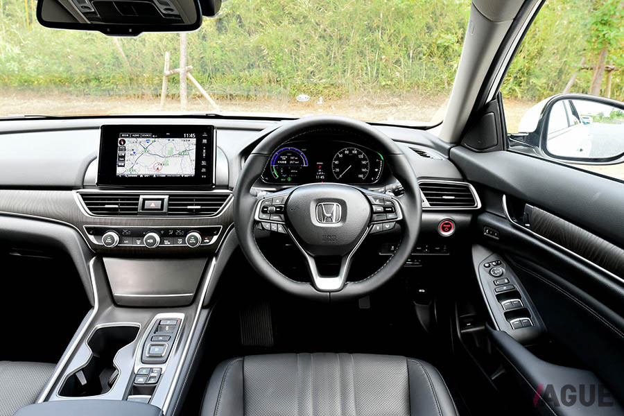 インテリアはオーソドックスにまとめられている。POWERスイッチはダッシュボードのドアサイドに設けられているが、これは緊急時、助手席からでもOFFにできるように中央側にするべきだろう。ちなみに左ハンドル仕様のアコードは中央側になっている。