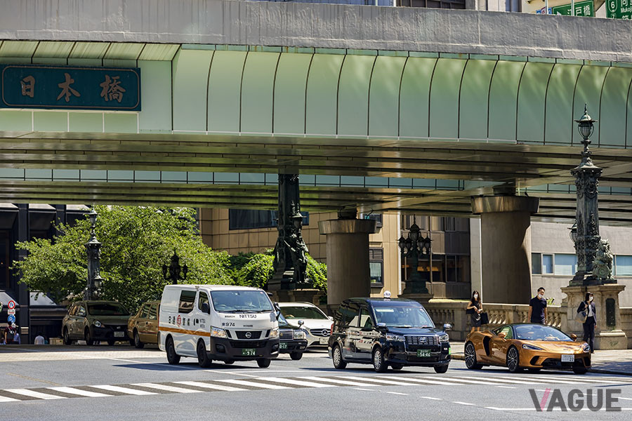 日本橋から中央通りを銀座方面に進む。平日なので、周りはタクシーやトラック、ミニバンや軽トラックなどがたくさん行き交っている。新型コロナウイルス感染症による非常事態宣言が解除され、路上には日常が取り戻されているようだ。
