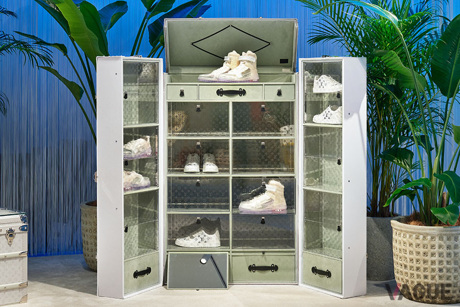 おすすめは、なんといってもオープンを記念して日本初披露となるスニーカートランク「タイガラマ アンターティカ スニーカー トランク」だ。お気に入りのスニーカーコレクションを、透明のモノグラム・モチーフがあしらわれた引き出しにディスプレイするように収納できる。スニーカーのコレクターに愛されるトランクの提案というわけだ。トランクを開けて、インテリアとし楽しみたくなる。