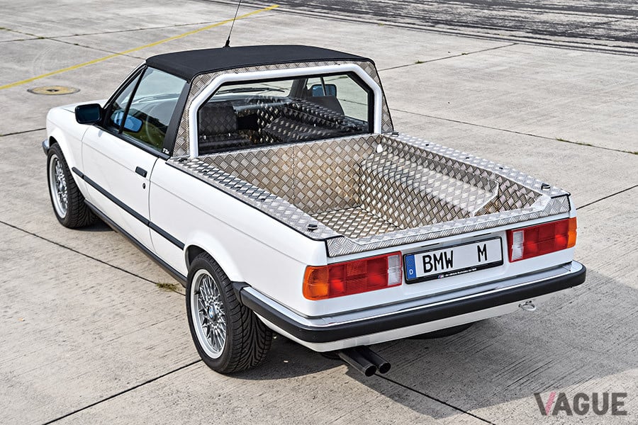 E30 3シリーズには、クーペ、セダン、カブリオレ、ツーリングと、多彩なボディ形状がラインナップされていたが、ピックアップは市販モデルラインナップには存在していない。