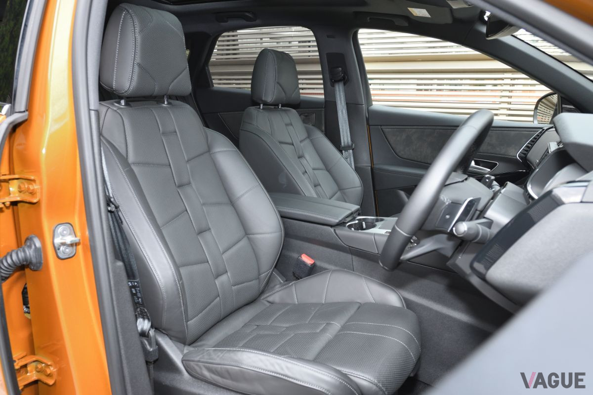 シートに座る前に気付くのが、クッション部とバックレストの大胆なデザインである。試乗車はオプションのOPERA(ナッパレザーシート、ナッパレザーダッシュボード、フロントシートベンチレーション)が付いていた。