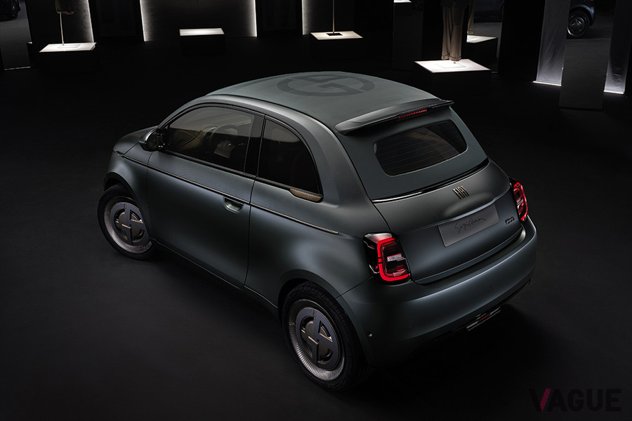 イタリアン・エレガンスの帝王といえば、ジョルジオ・アルマーニが有名だ。アルマーニが主催するオートクチュールハウスは、EVへと変化する500に独自の解釈を加え、時代を超越した仕立てとサステナビリティを表現した。