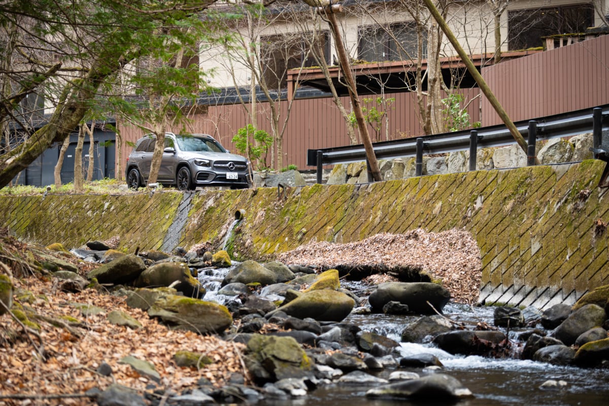宿へ近づくにつれ、急な上り坂やタイトなカーブが連続するが、GLBは涼しい顔で標高を上げていく。背の高いSUVなのに視点がブレない安定感は、三半規管への余計なストレスを見事に消し去ってくれた。