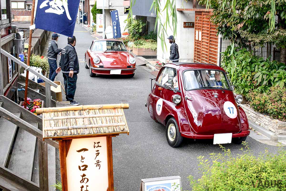 おみくじのあと、浅草から柳橋へと進行したエントラントは、ここで2度目となるPC競技に臨んだのち、老舗のつくだ煮屋「小松屋」のお土産が全参加車両に配布された。