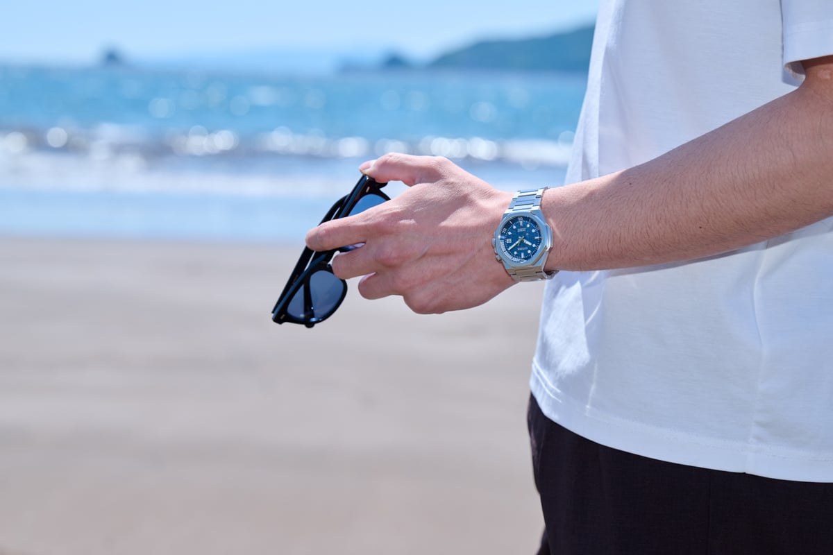 無反射両面コーティングのサファイアガラスのおかげでダイヤルの視認性もよく、強い日差しのなかでもしっかりと時刻を読み取れます。