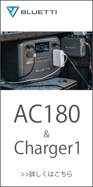 そこでぜひ提案したいのが、1152Whの大容量を備えたBLUETTI「AC180」(セール価格 7万6800円、通常価格 13万9800円[共に消費税込])と、クルマでも効率的な充電を実現するオルタネーターDC充電器「Charger1」(セール価格 3万3000円、通常価格 5万8000円 [同])の組み合わせです。