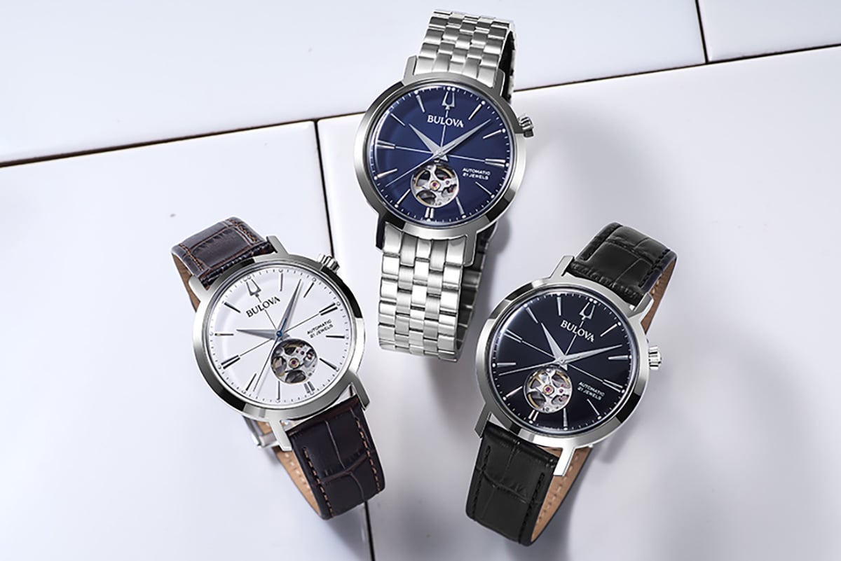 6時位置のダイヤルがオープンハートになっており、機械式時計ならではのムーブメントの動きが楽しめるほか、センタークロスのデザインやスリムに伸びた美しいバーインデックスなど、レトロモダンな雰囲気を漂わせているのもポイント。