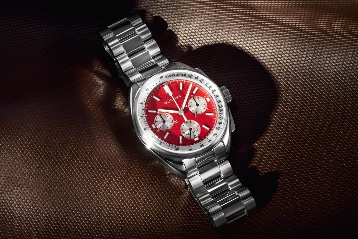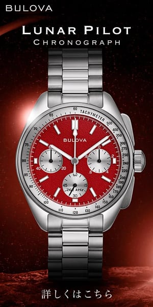 最後に紹介するのが、赤いダイヤルを携えた「ルナ パイロット クロノグラフ」。実はブローバといえば1971年の月面着陸と関係が深い。NASAの「アポロ15号」が月面着陸した際の船長が、当時のモデルを使用していたという逸話に基づくものだ。