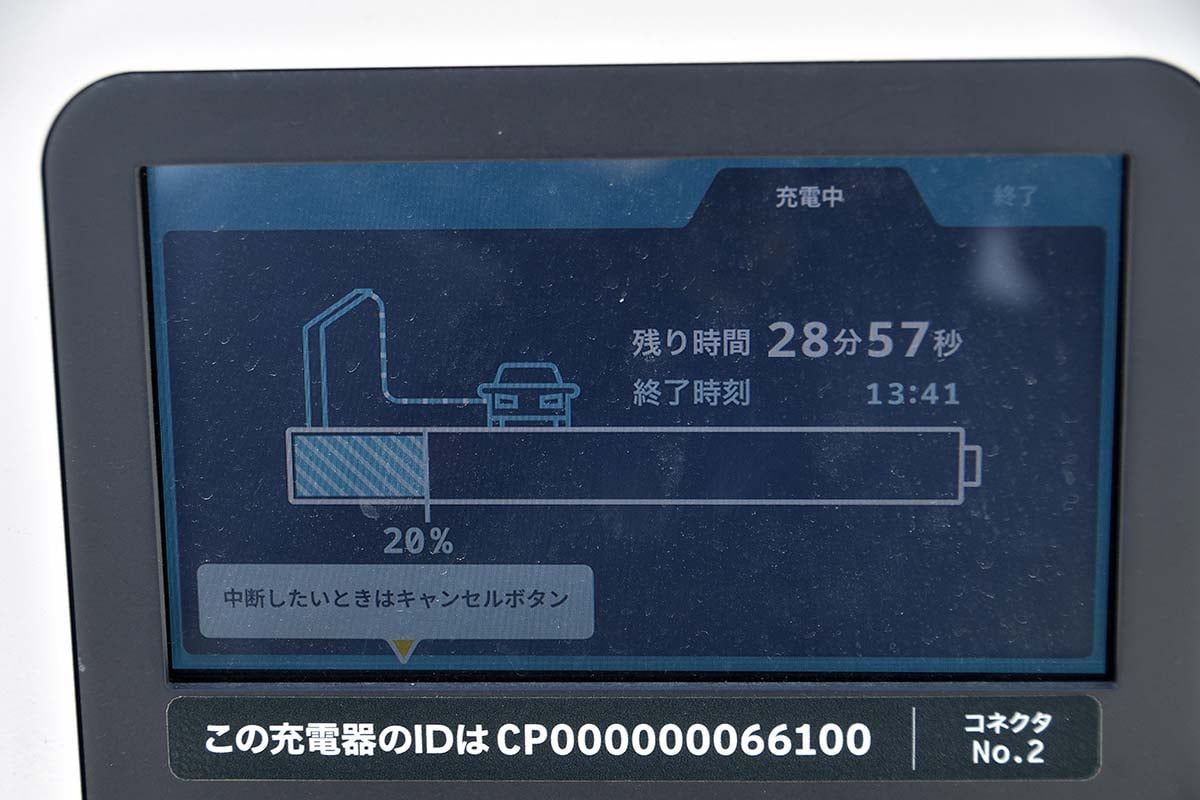 関越自動車道に入り、しばらく走ったところで上里SAに立ち寄りました。ここで急速充電を行います。上里SA下り線のEV充電スタンドは最大90kWの出力に対応しており、新型は充電速度も向上しているため、80%までの充電時間は約32分と、従来型より6分短縮されています。短時間の休憩で十分な電力を確保できたのは、大きな進化といえます。