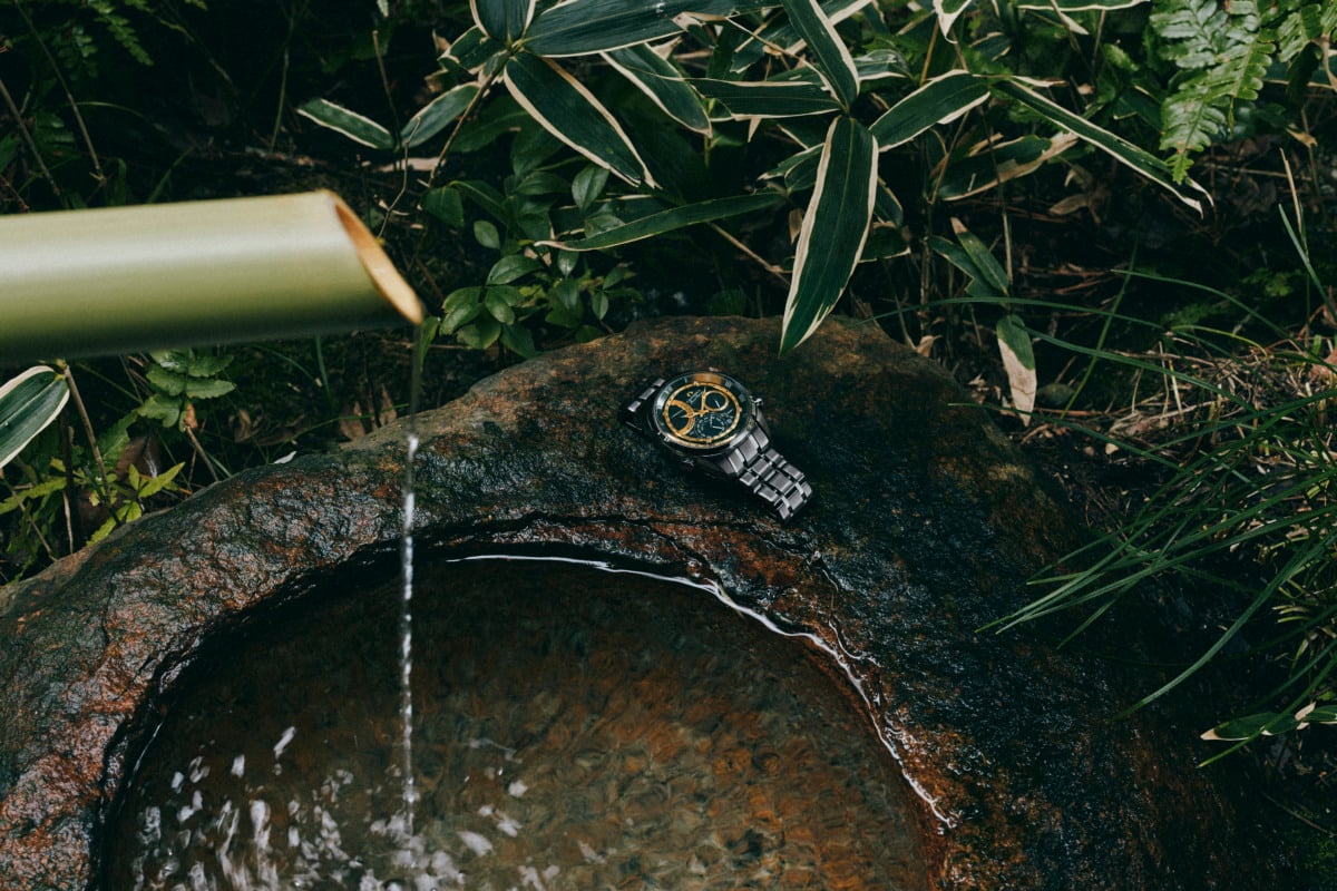 自然界の偶然が織りなす水琴窟の微細な響きと、クオーツテクノロジーが制御するミニッツリピーターの正確無比な音響。アナログな自然現象とハイエンドな電子機構という両極にあるものが、「音を愛でる」という日本古来の美意識において完全に融和している。