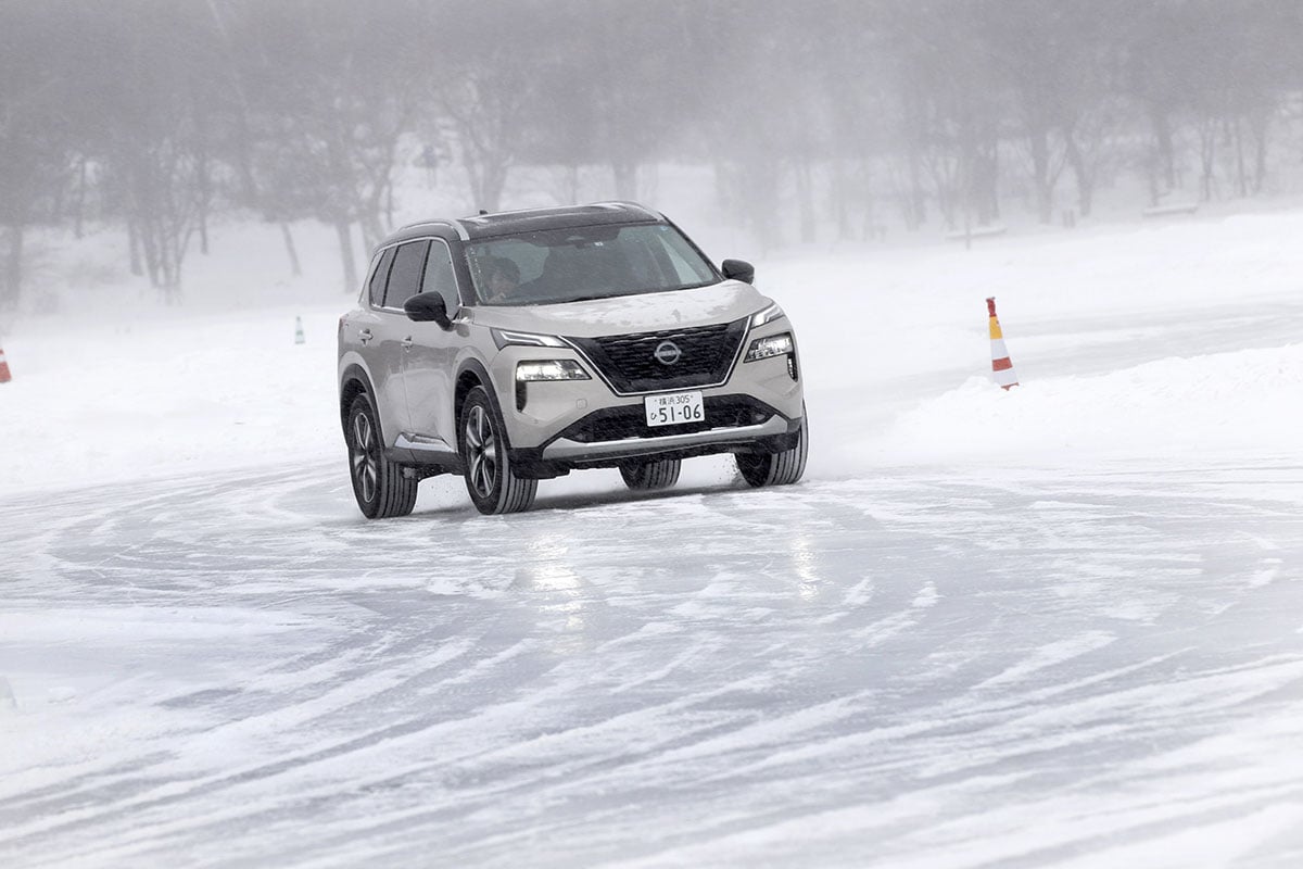雪道や凍結路でも驚くほど安心してドライブできる新型エクストレイルだが、そうした過酷なシーンでますます頼りになるのが、e-4ORCEに設定される「スノーモード」だと藤トモさんはいう。