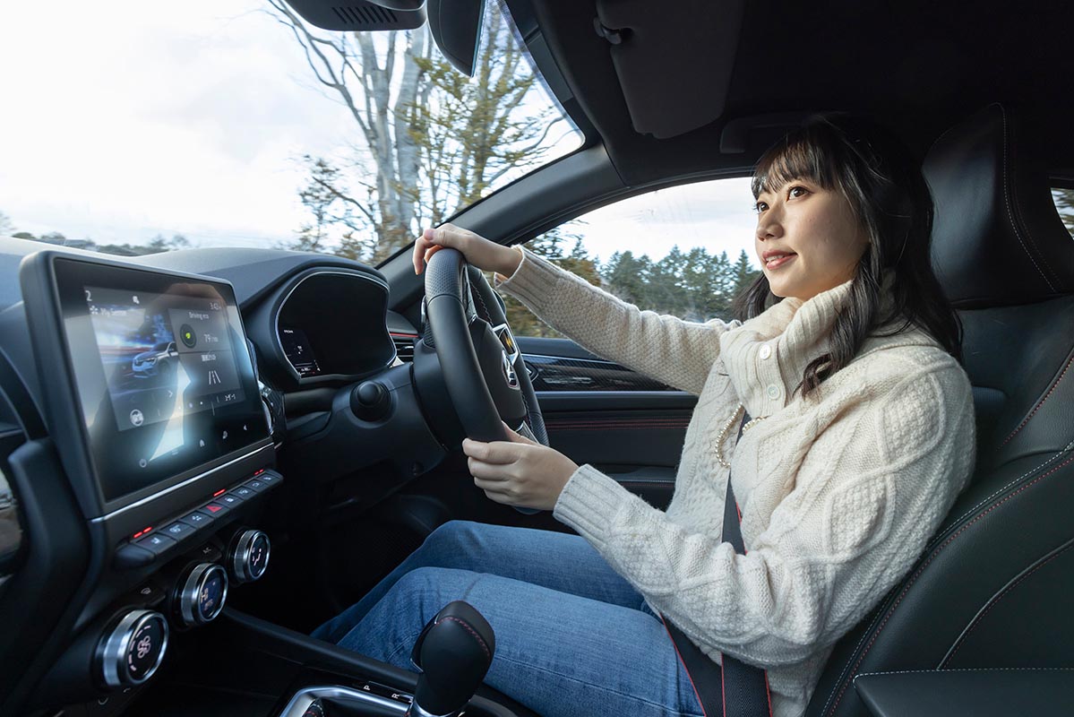その期待を裏切らないな、と感じたのは、ドライバーズシートに乗り込んですぐのことだった。ステアリングを握ると頼りがいがある。レザー表皮が手にしっとりとなじむ感覚や握りやすいサイズ設定など、女性の手にもフィットし、安心感を覚えるのだ。これだけでもロングドライブへの期待感が高まってくる。