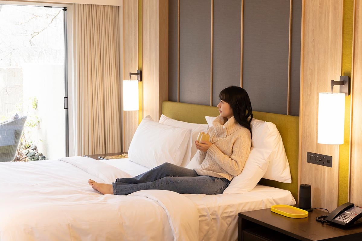ただ自然に癒されるだけでなく、自然からインスピレーションを受けた空間を楽しめるのもこのホテルの魅力だ。そのことに心を躍らせながら、部屋へと案内してもらう。