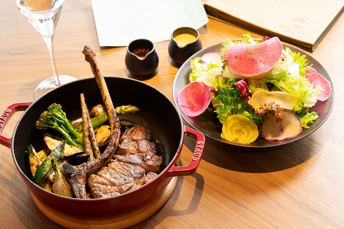 寒い季節に甘みが増す紅芯大根には“KAGARIBI”の文字が刻まれ、これだけでもシェフの矜持が垣間見える。そして、こんがり焼けた豚肉を口にしたとき、積み重ねられた技の粋を感じた。