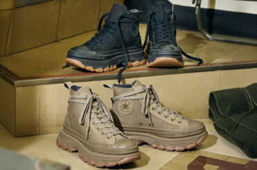 コンバースの名作シューズ「オールスター」をアップデートした次世代モデル「ALL STAR(R)」。その最新モデルは、耐久性に優れるコーデュラナイロンとスエードをコンビ使いしたタフな1足で、トレッキングシューズを想起させるボリューム感あふれるアウトソールが目を惹きます。