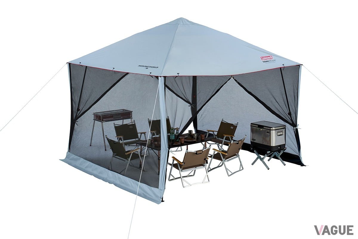 突然の雨も強烈な日差しもブロック! コールマンの定番“簡単設営ダークルームシェード”がさらに進化して登場 デイキャンプや野外フェスに最適な新機能とは