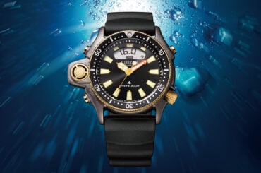 シチズンのプロマスターより、発売当時に世界初のエレクトロニクス水深計搭載モデルとして人気を博した「アクアランド」の誕生40周年を記念する「プロマスター アクアランド 40周年記念限定モデル」(8万2500円 消費税込)が発売となります。