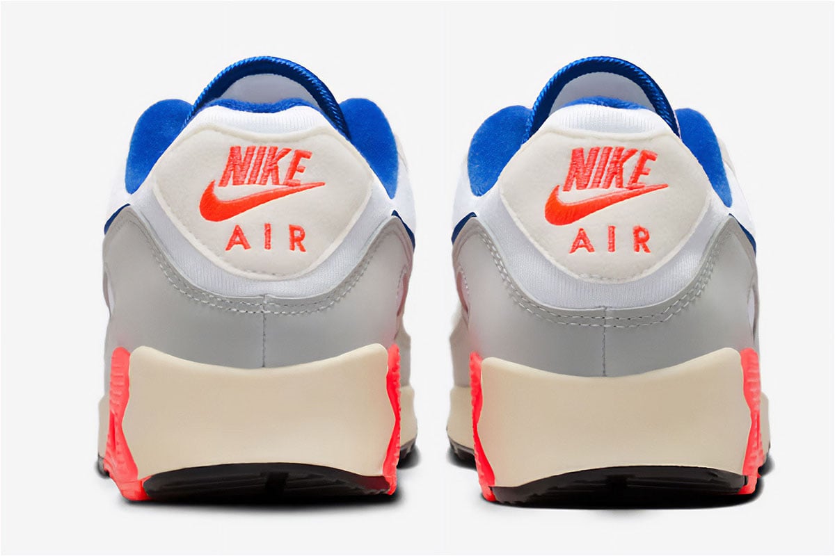 ナイキの定番スニーカー「エア マックス 90」に、グレーをベースにスポーツロイヤルのブルーを効かせた新色“ベースグレー&スポーツロイヤル”が登場しました。1990年に天才デザイナーのティンカー・ハットフィールドが手がけた名作のシルエットはそのままに、春夏コーデの足元に映えるさわやかな配色が特徴です。
