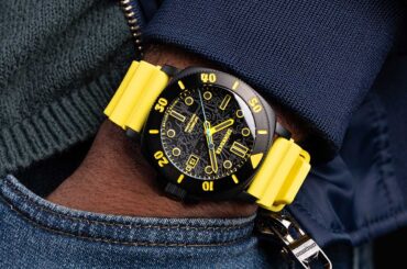 ファッション性の高いダイバーズウォッチが人気のスピニカーより、ダイヤルとベゼルにフォージドカーボンを大胆に用いた新作「テセイ フォージドカーボン オートマティック」(9万3500円 消費税込) が登場。時計全体が幻想的な光を放つルミナス仕様、世界限定200本という希少性も魅力です。