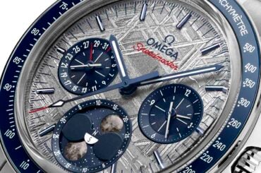 オメガより今年最初の新作として「スピードマスター ムーンフェイズ メテオライト」が発表されました。1969年の人類初の月面着陸以来、宇宙と深い関わりを持つスピードマスター最新作は、神秘的な輝きを放つメテオライト(隕石)ダイヤルが特徴です。