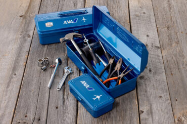 ANAと東洋スチールがコラボしたツールボックスに、ANAのロゴと機体をプリントした注目アイテムが登場しました。ANAの見学ツアー参加者のみが購入できるツールボックスをアレンジし、今回、待望の一般販売がスタート。ANAの旧ロゴをデザインしたステッカーが付属する特別セットも用意されています。