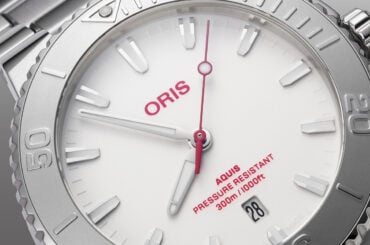オリスより初の日本限定モデルとして「アクイス ジャパン リミテッド エディション」(49万5000円 消費税込)が登場となります。日本とスイスの国旗に共通するホワイトとレッドによるカラーリングで、日本へのオマージュを表現したモデルとなっています。